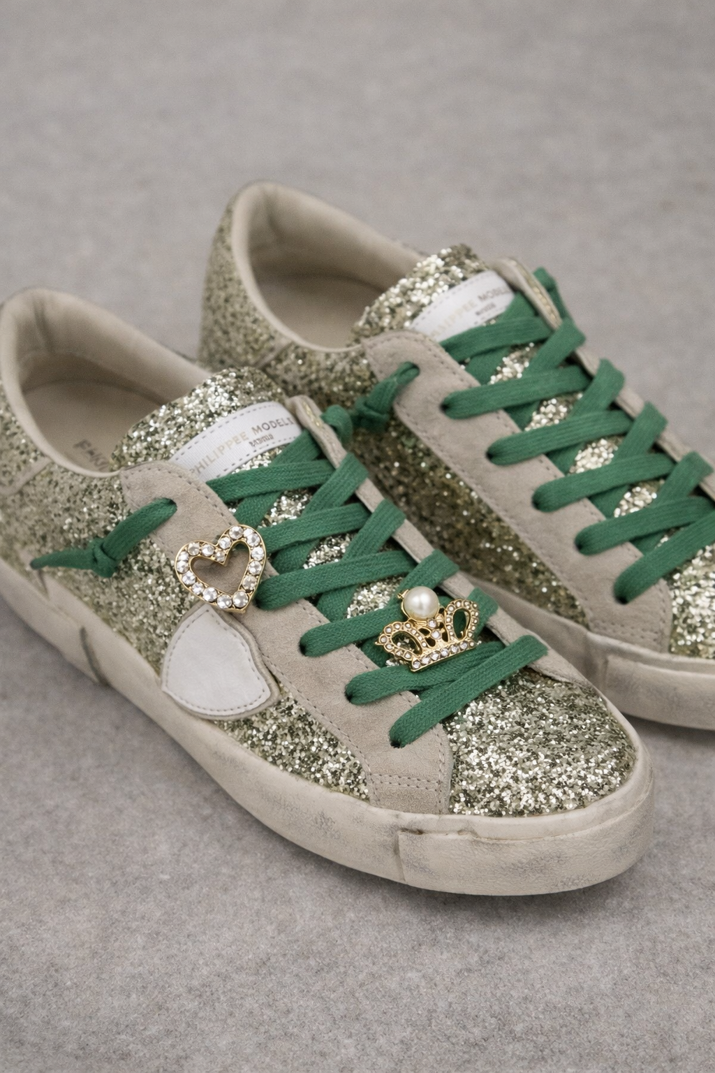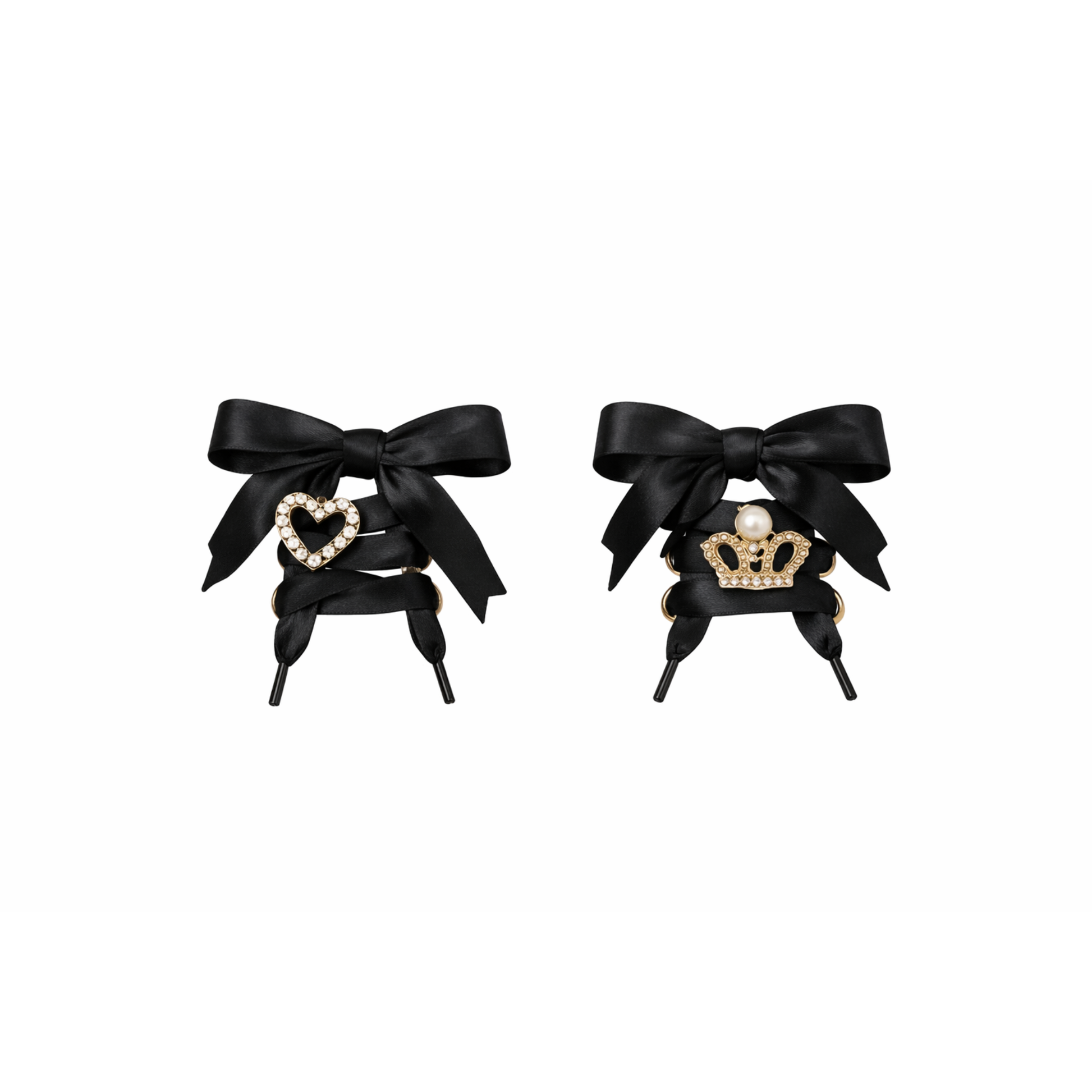 U pakiranju je jedan par satenskih vezica i dva ukrasa sa slike. Kruna i srce koji se mogu dodati ili maknuti.